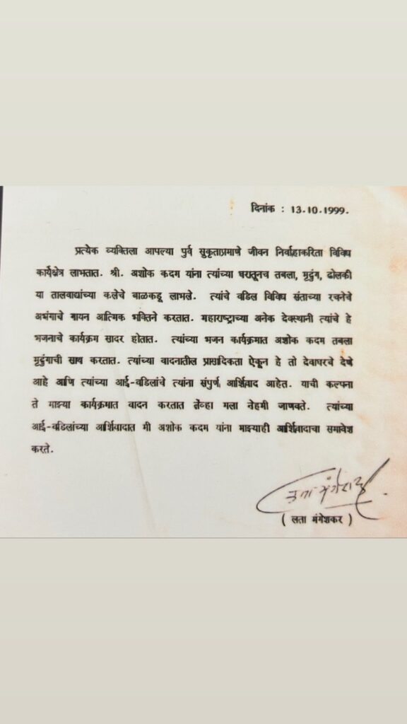 सर्व फोटो तबला वादक अशोक कदम यांच्या सौजन्याने