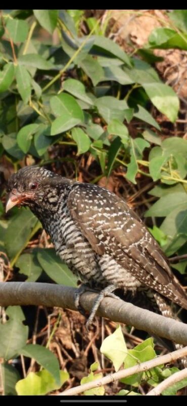 रस्त्यावरून चालत असताना अनेक प्रकारचे छोटे पक्षी किलबिलाट करत होते. त्यात फुलटोचा (Flowerpeckers), सुर्यपक्षी (Sunbirds), वटवट्या (Prinias), (Warblers) यांची हालचाल बऱ्याच प्रमाणात होती. अधूनमधून आम्हाला (Golden Oriole) हळद्या आणि ( Long Tailed Shrike) नाकल्या खाटीक पक्षी त्याची उपस्थिती सांगत होते. काही अंतरावर एक झाडावर दोन भारद्वाज (Coucal ) पक्षी बसलेले दिसले. दलदली भोवत्या (Marsh Harrier) जवळच आवाज देत उडत होता.