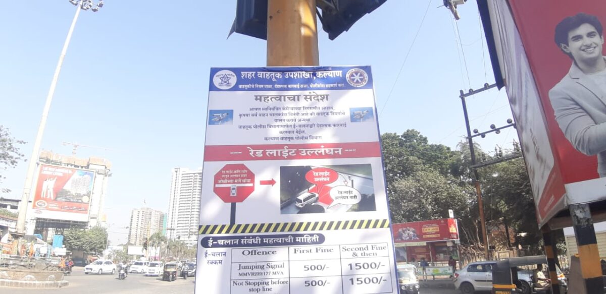 वाहतूक पोलिसांकडून उद्यापासून ई चलानद्वारे दंड आकारणी कल्याण सिग्नल मोडणाऱ्या वाहन चालकांवर उद्या (मंगळवार) २२ फेब्रुवारीपासून ई चलानद्वारे दंड आकारणी…