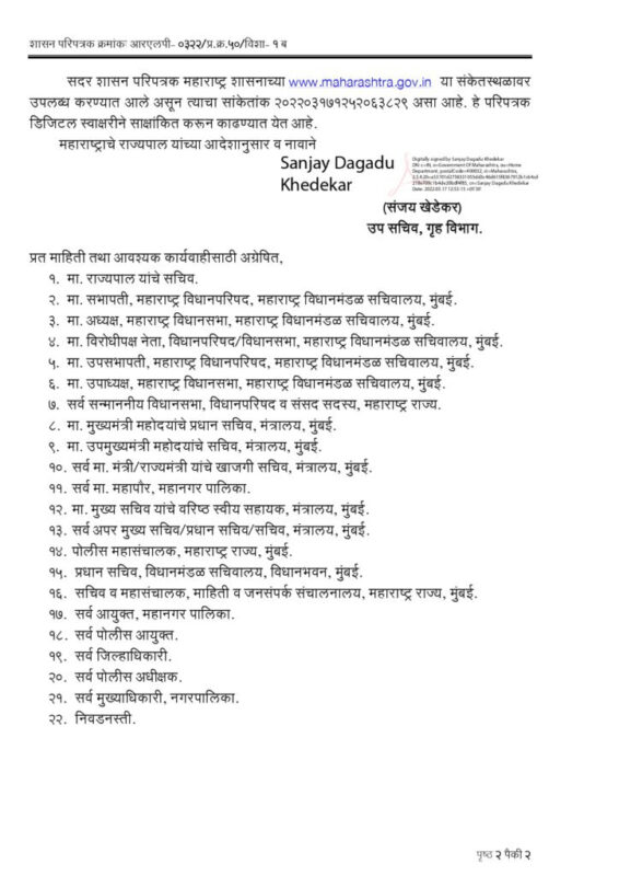 कोविड १९ चा प्रादुर्भाव रोखण्यासाठी शासनाच्या मदत व पुनर्वसन, आरोग्य, पर्यावरण, वैद्यकीय शिक्षण विभाग तसेच संबंधित महानगरपालिका, पोलीस प्रशासन, स्थानिक प्रशासन यांनी विहित केलेल्या नियमांचे काटेकोर पालन करावे, तसेच या परिपत्रकानंतर व प्रत्यक्ष सण सुरु होण्याच्या मधल्या कालावधीत अजून काही सूचना प्रसिद्ध झाल्यास त्यांचे देखील अनुपालन करावे, असे गृह विभागाच्या मार्गदर्शक सूचनांमध्ये नमूद केले आहे.